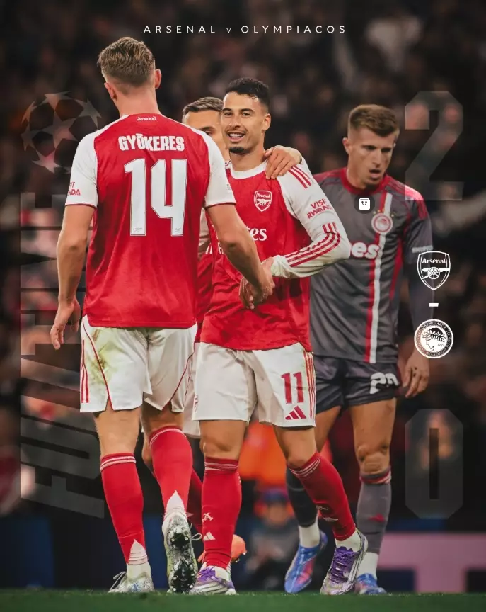 英超阿仙奴2:0擊敗奧林比亞高斯。FB圖片@Arsenal