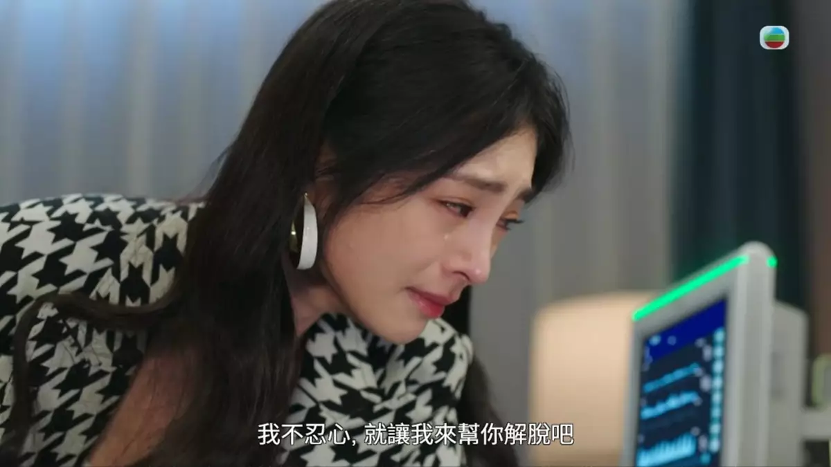 昨晚焦點場口,絕對是王啟心硬闖醫院強硬拔走爸爸王進濤(鍾鎮濤飾)氧氣喉一幕!原本拿著進濤腦死亡報告怒氣沖沖走入病房的啟心,當見到爸爸奄奄一息的模樣,馬上心痛至雙眼通紅、隨著豆大的眼淚一滴一滴的落下、啟心的內心VO為:「當我知道你出咗意外,我好開心...我以為嚟到見到你,我會笑,但係點解我會不自覺咁流眼淚?個心仲好痛!呢種痛,令我領悟到,原來你始終都係我爹哋」…「原來無論發生過咩事,當我知道我會失去你,我係會好難過,宜家親眼睇住你畀董一妍搞到半死不活,我唔忍心,就等我幫你解脫啦!」