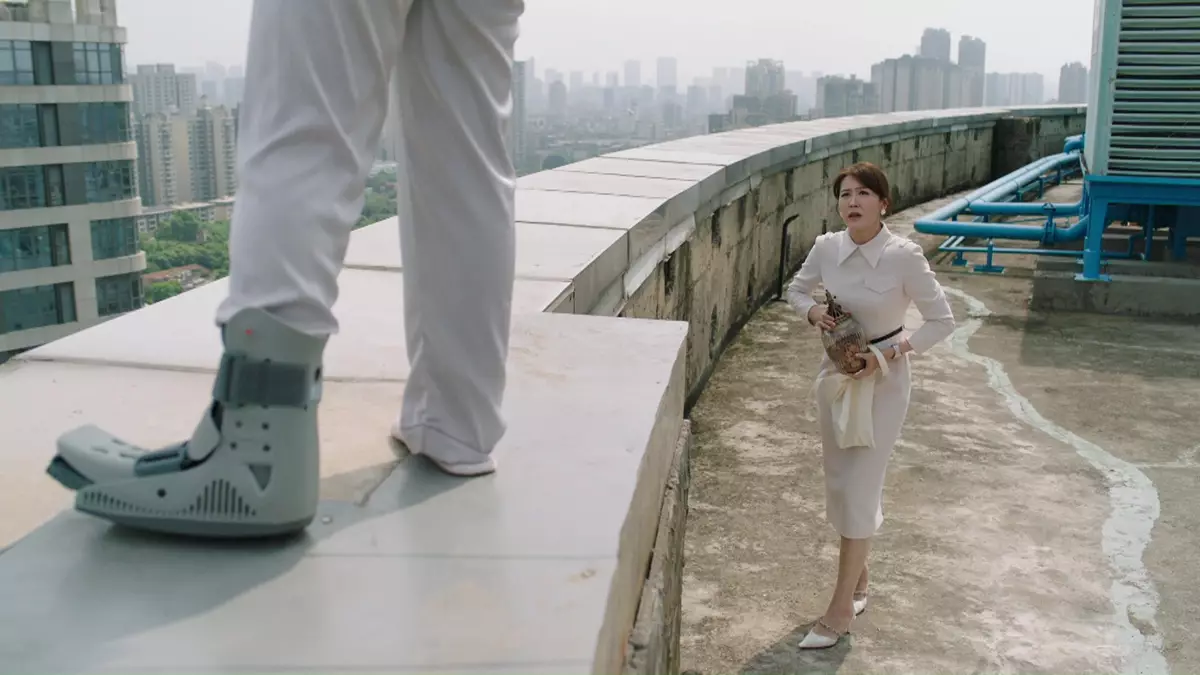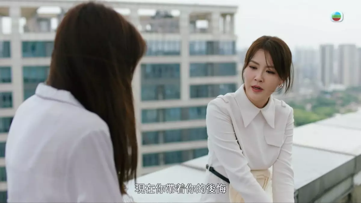 麗雪絕望地危站天台,幸以珈及時趕到。
