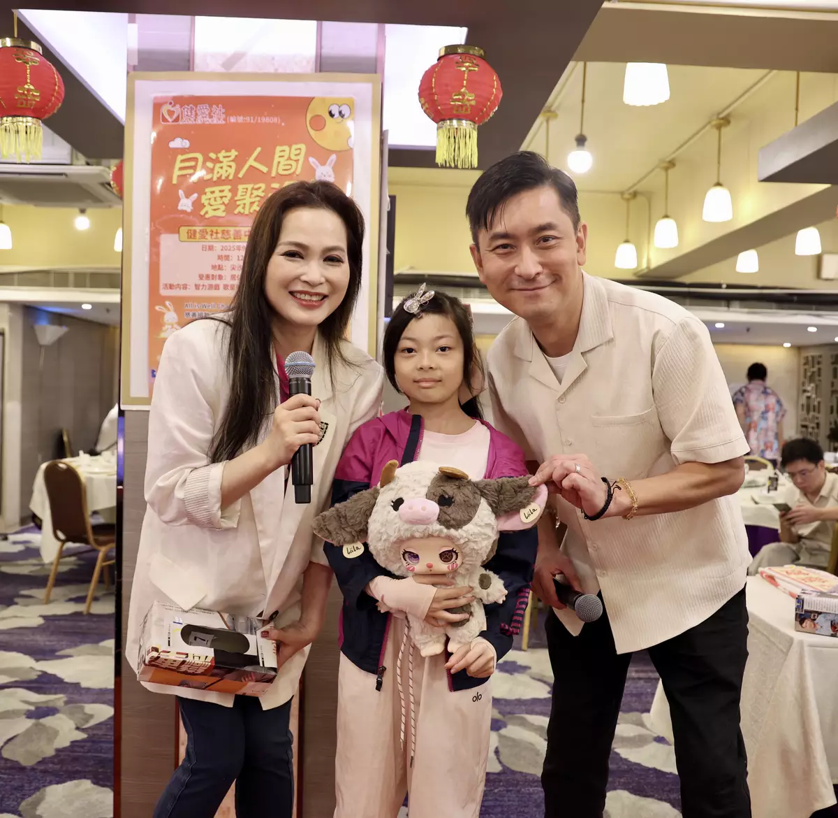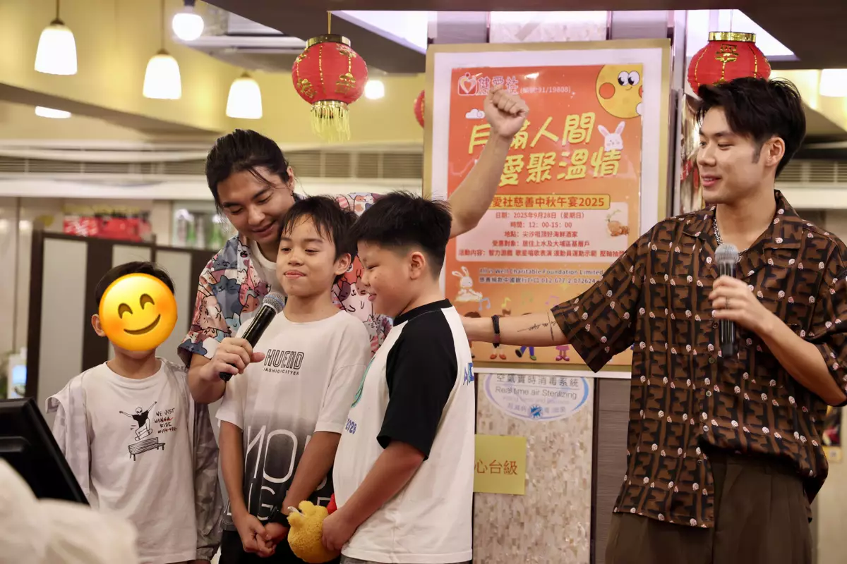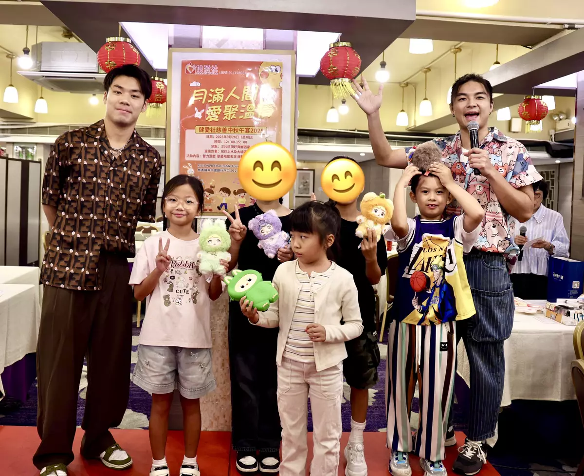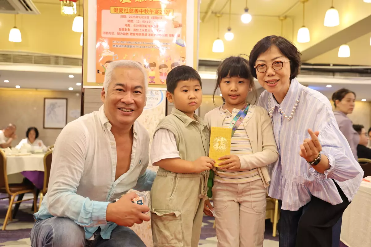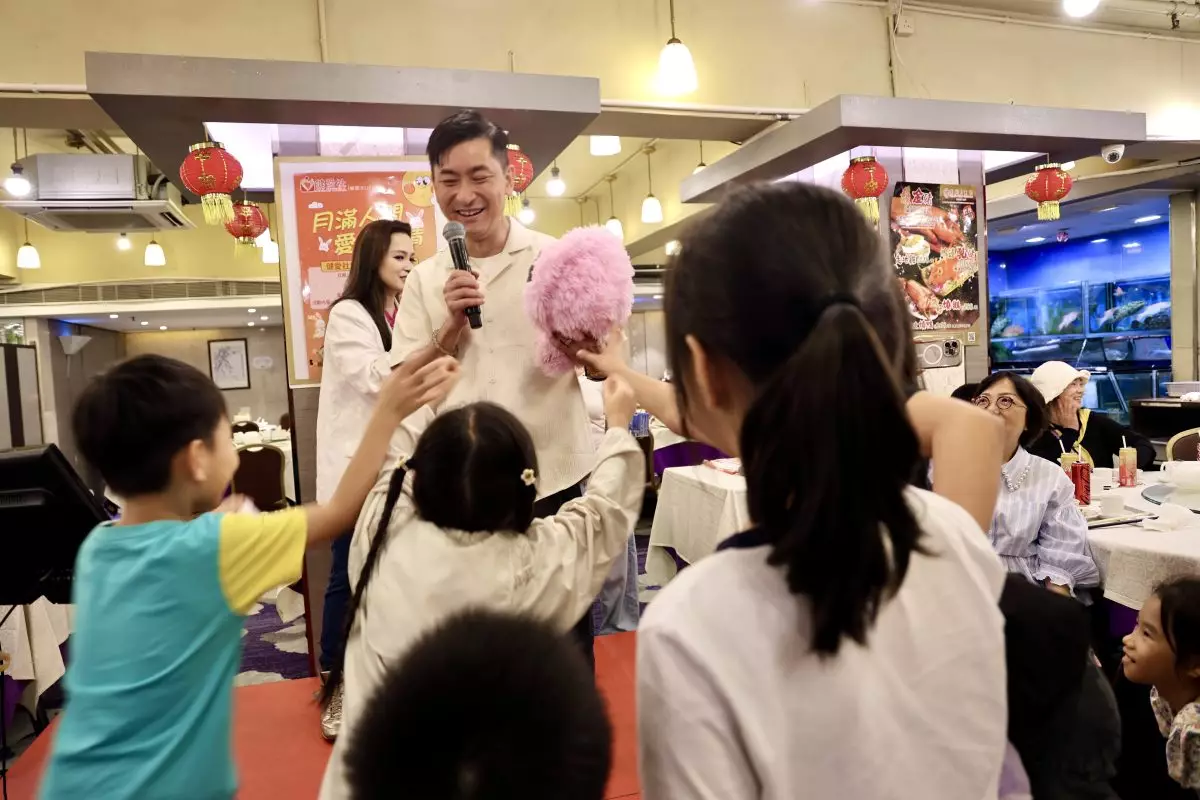 慈善午宴送出大中細多款毛公仔、應節月餅、健康食品、護齒工具、超市禮券,當小朋友知道活動接近尾聲的時候,已經按捺不住,走上台與一眾藝人歌手大合唱,大家仲齊齊俾心心影大合照。各人帶着笑聲及愛回家,場面非常溫馨。