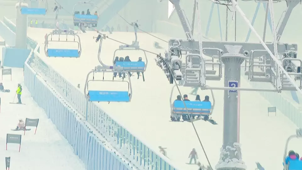 該滑雪場設施總面積達10萬平方米,5條雪道,配備纜車及輸送帶,其中兩條雪道可舉辦專業賽事。影片截圖