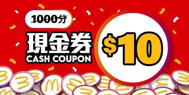 麥當勞 App 300分換領超值套餐減$10現金券