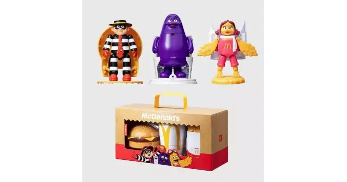 麥當勞樂園人物人氣一直高企,今次全新推出的「復古變形公仔套裝」更讓滑嘟嘟、漢堡神偷及小飛飛大變身,分別化身成為其標誌性麥當勞美食:滑嘟嘟一向對奶昔愛不釋手,自然變身成為麥當勞飲品杯;漢堡神偷亦人如其名化身成自己最愛的漢堡飽;而小飛飛是天生早餐代言人,當然是變裝成為只於早餐供應的脆薯餅。