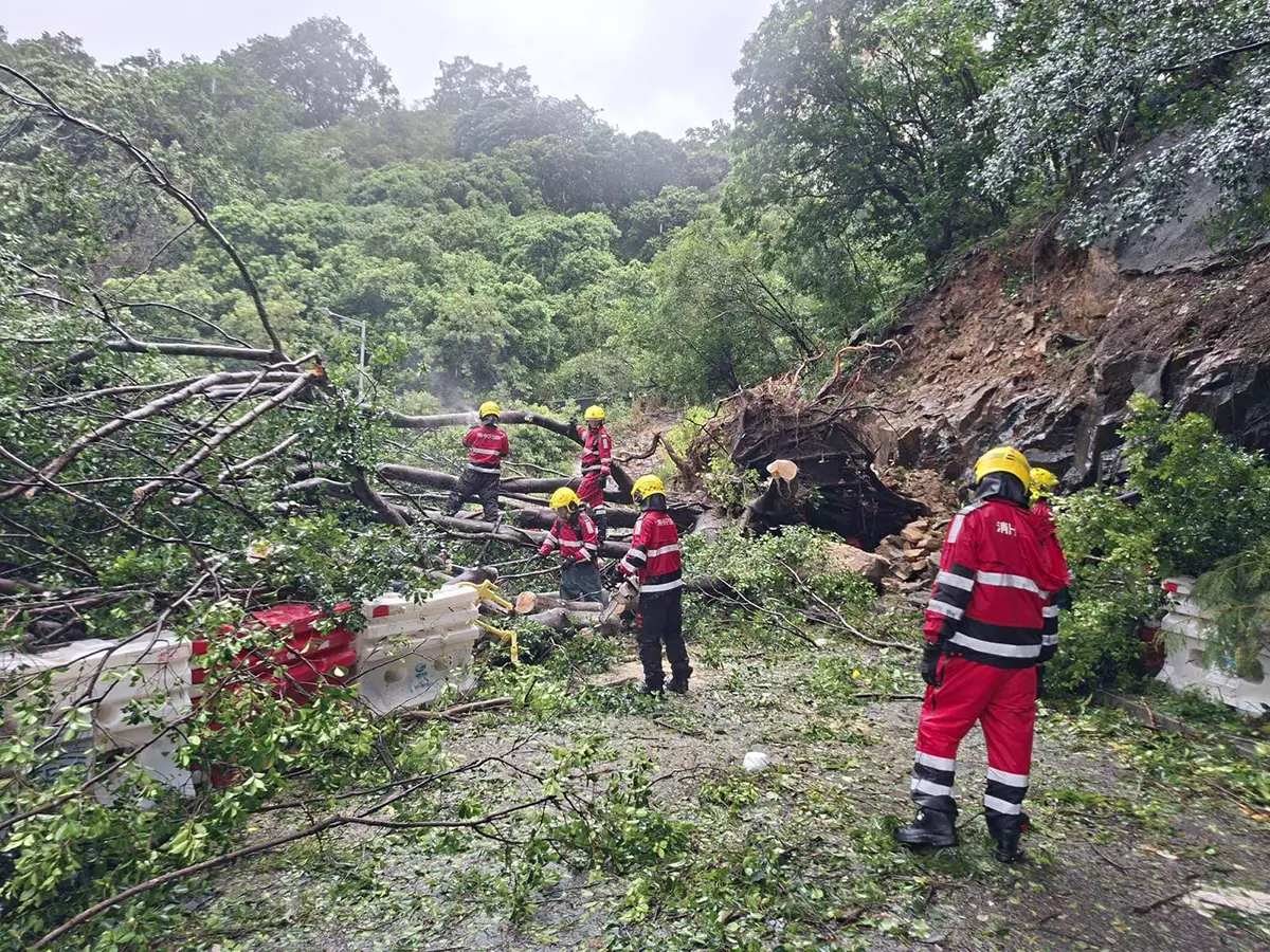 風暴期間多處發生塌樹,各部門合力清理路面。消防處fb圖片
