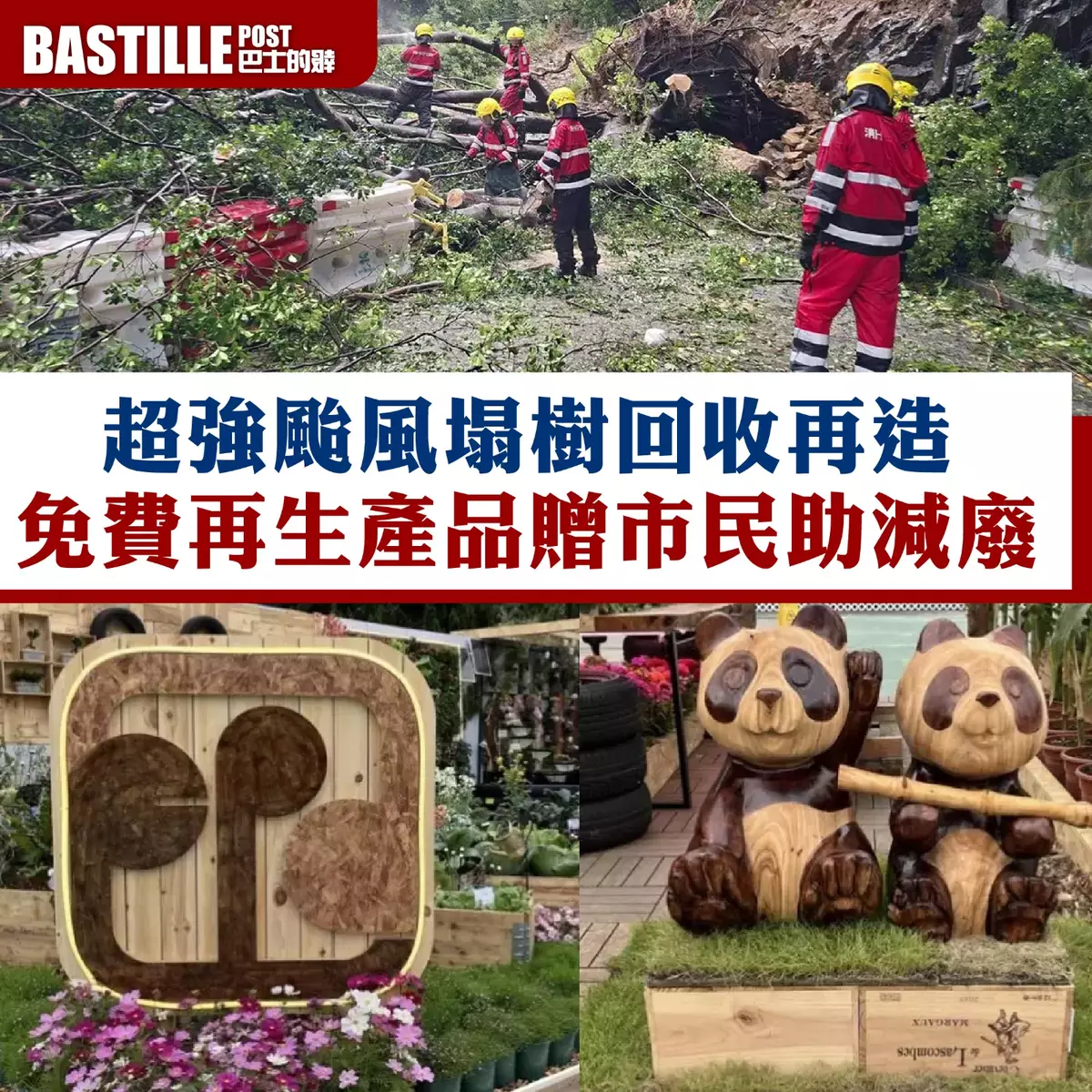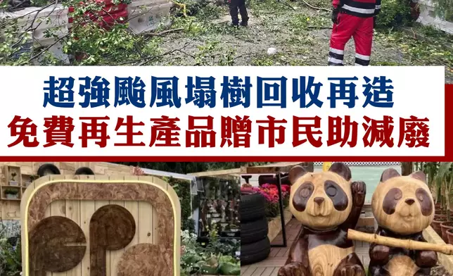 環保署表示,收集至少1200公噸在超強颱風樺加沙襲港造成的塌樹物料,運到園林廢物回收中心「Y·PARK 林·區」,轉廢為材,可循環再造為日用品、裝飾或家具等,可以免費送給市民。
