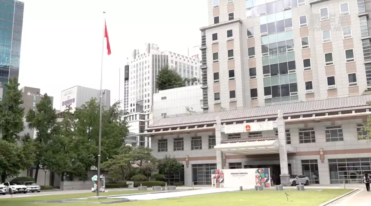 中國駐南韓大使館。新華社圖片