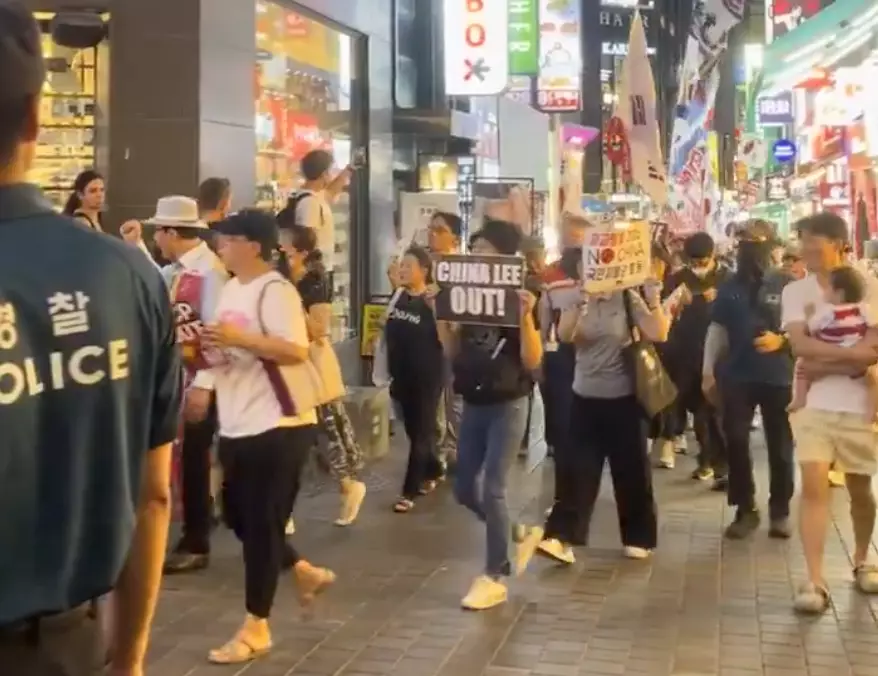 南韓8月的反華示威。X圖片