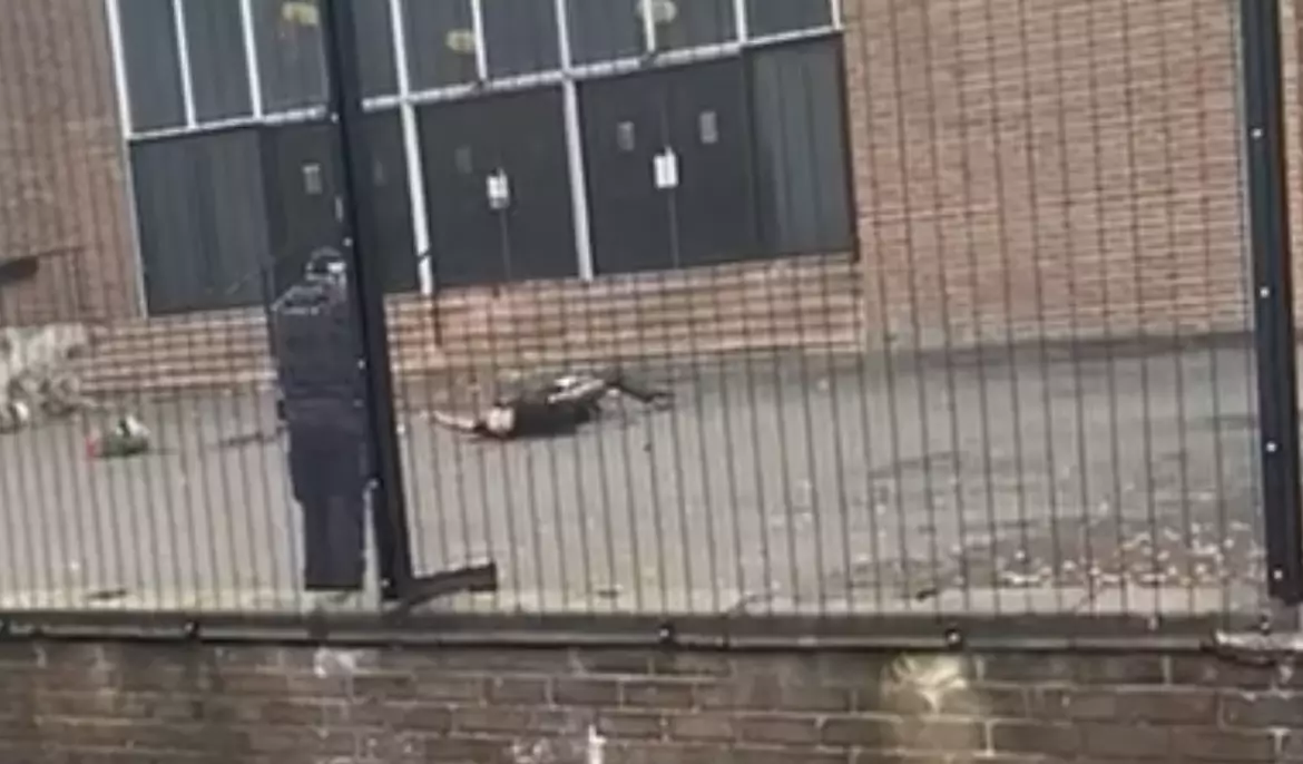警察用槍指向一名倒地的人。Ashleigh Hamer FB