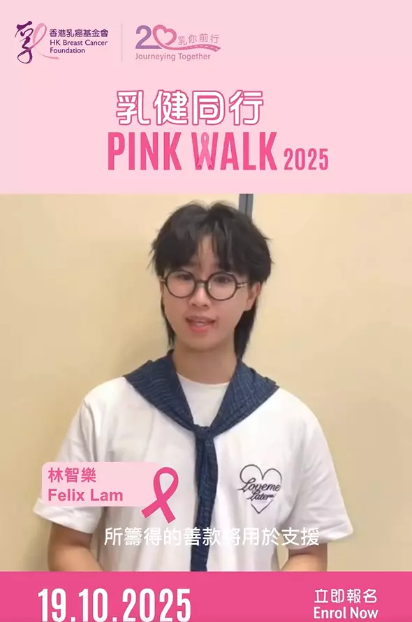 「乳健同行2025」慈善步行籌款,步行路線由山頂道花園出發步行至山頂凌霄閣,全程約3.5公里,約需1小時至1.5小時完成,歡迎一家大小、三五知己,甚至攜同寵物參加,度過健康又有意義的周日。而為響應「粉紅10月」,基金會鼓勵參加者穿上粉紅服飾,共襄盛舉。由即日起接受報名參加。網址:https://pinkwalk.hk/