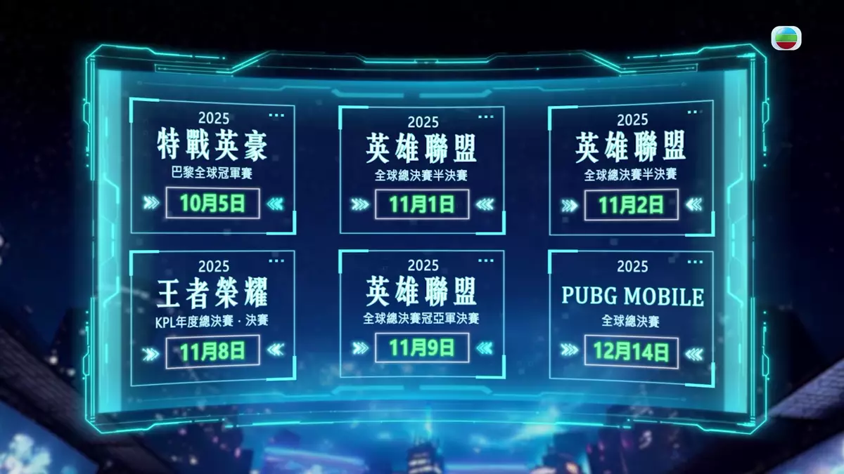 無綫電視一直本住不斷創新,為觀眾發掘新事物精神,創作及引入不同類型綜藝節目。為迎合全球熾熱的電競運動,本周日(10月5日)起將接連直播多場媲美奧運會的電競賽事。本周日首場賽事《滙豐(TVB特約合作伙伴)呈獻︰2025特戰英豪巴黎全球冠軍賽》將於晚上7點至7點半,翡翠台、明珠台兩台同步以廣東話及普通話直播,7點半後明珠台會繼續直播至比賽完結,全程賽事由資深電競評述員老星及職業電競選手龐加曦擔任評述。