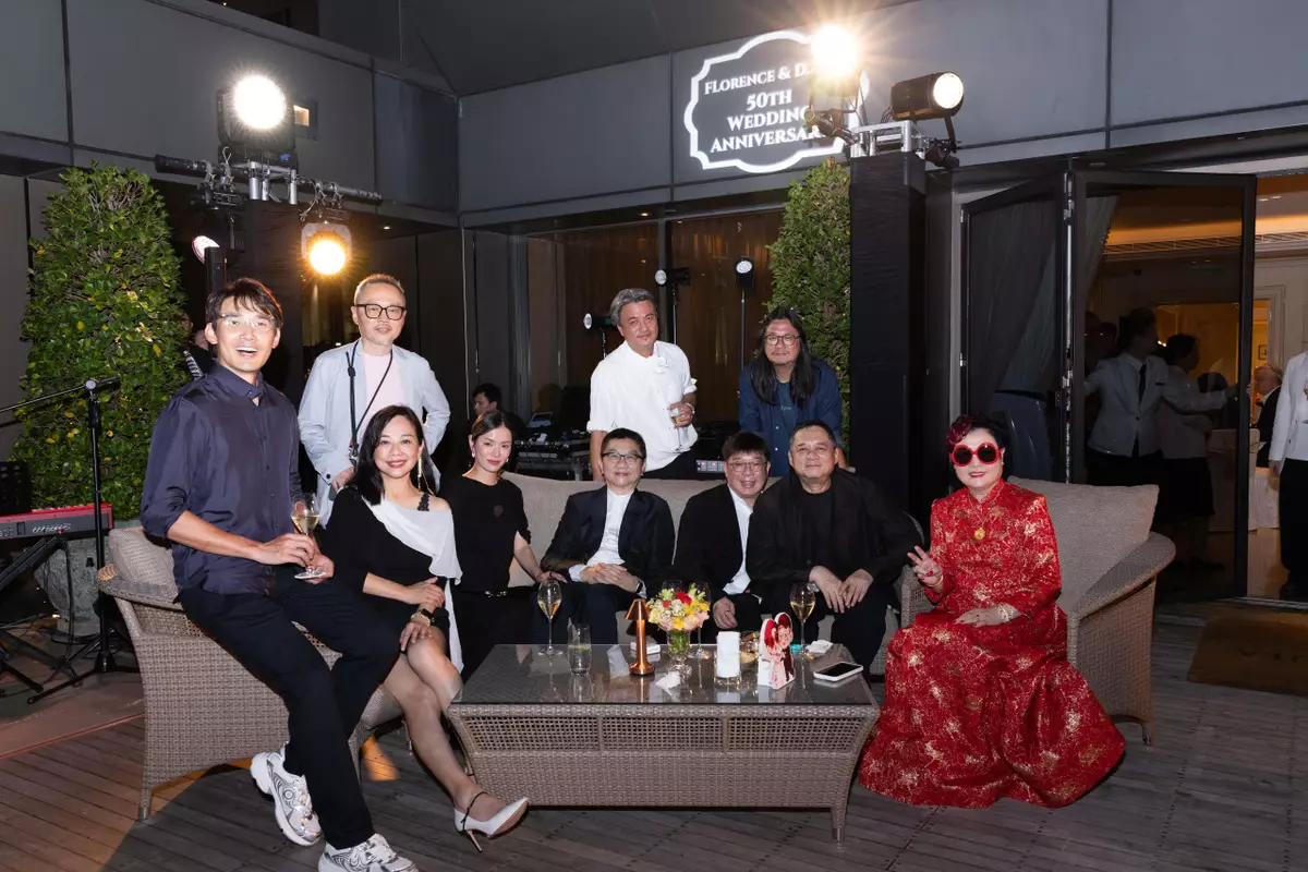今次金婚之囍晚宴地點設於半島酒店附帶露台的Garden Suite,當晚適逢國慶煙花匯演,陳太和大老爺便和一眾出席的至親好友:包括他們的家人、胡楓(修哥)、狄波拉(拉姑)、姜大衞、李琳琳、唐鶴德 (唐唐)、何麗全、奚仲文、張叔平、陳華國、Wing Shya、馬榮成、Rigo Jesu、黎筱娉、顧紀筠、Owen Chan、Simon Tse、鍾楚霖、陳少琪、陳松伶、張鐸、謝天華、連炎輝、劉宏基和身兼主持的林盛斌 (Bob)等,把握機會在漫天煙花的璀璨背景下,拍攝了非常珍貴的大合照留念。
