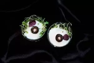 鮮茄汁羅勒油溫泉蛋 (青根血眼)