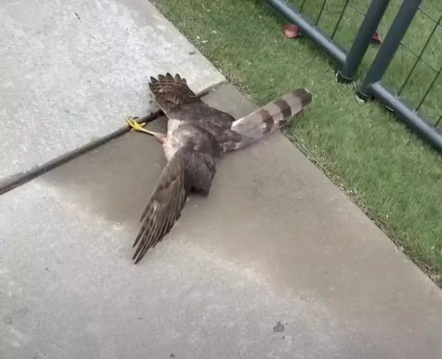 門外驚現猛禽疑暴斃 女子難過準備埋葬