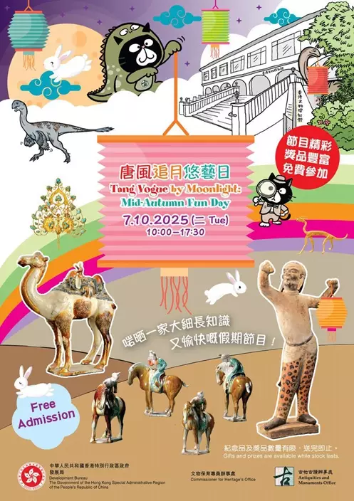 發展局古物古蹟辦事處於中秋團圓佳節呈獻「唐風追月悠藝日2025」,與您齊齊追月,10月7日星期二在香港文物探知館舉行。