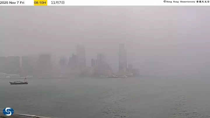 天文台表示一股達強風程度的東北季候風正影響廣東沿岸。此外,一道雲帶覆蓋該區及南海北部。早上港島及新界東部分地區錄得約5毫米雨量。