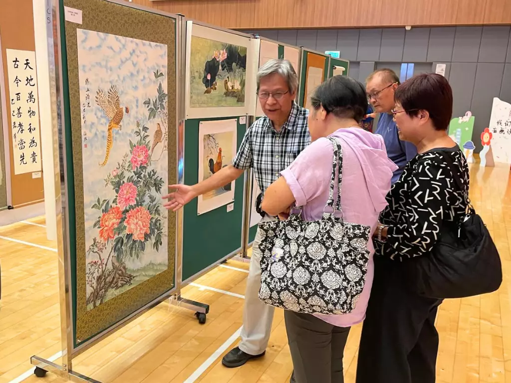 華創建投義工隊代表朱韻霓表示,華創建投繼2024年聯同大埔區各界舉辦「同心創夢慶國慶」書畫展後,今年除了擴大展品數量,還特别增設3個民間手藝工作坊,教導市民製作非遺漆扇、中國臉譜、中國結等傳統手工藝,「『靜態展覽+動態工坊』結合,既保留書畫藝術的筆墨底蘊,又能讓市民沉浸式感受中華文化的魅力。」