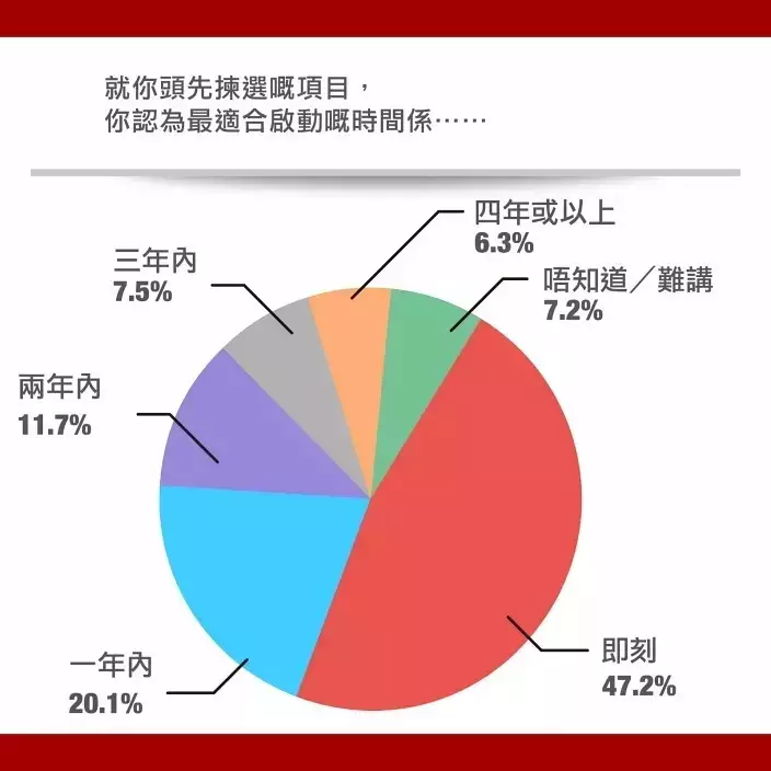 《巴士的報》上月初就做了一個民調,了解市民對北部都會區發展的意見。結果發現,認為應「即刻」啟動北都發展的佔逾4成半人,而認為適合1年內啟動的則佔逾2成,反映特首施政中提出加快北都發展,是回應大多數市民的訴求。