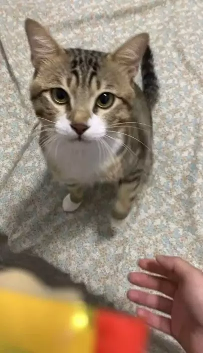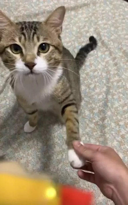 聰明虎斑貓僅練習兩次即學識「握手」露自信表情求誇讚萌翻網民。