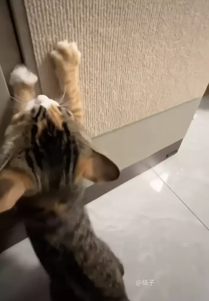 近日一段有趣影片在社交平台廣為流傳。一名飼主故意模仿自家橘貓,伸出手在牆上的貓抓板上反覆抓弄,試圖吸引貓咪注意。