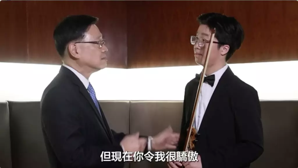 李家超指,時隔三年,再見到李同學時,他已出現在國慶文藝晚會中,踏上了紅館舞台,與著名小提琴家姚珏和香港弦樂團同台演出,演奏跨界作品《粵劇幻想曲》,令李家超非常驚喜。