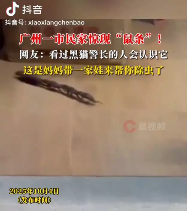 近日,廣州一名市民家中出現「一連串老鼠」的離奇畫面,引起網民熱議。影片中,一隻「小老鼠」咬住母鼠皮毛,帶領一整排幼鼠排成一列竄行,場面猶如內地經典動畫「黑貓警長」中的情景,相當有趣且罕見。
