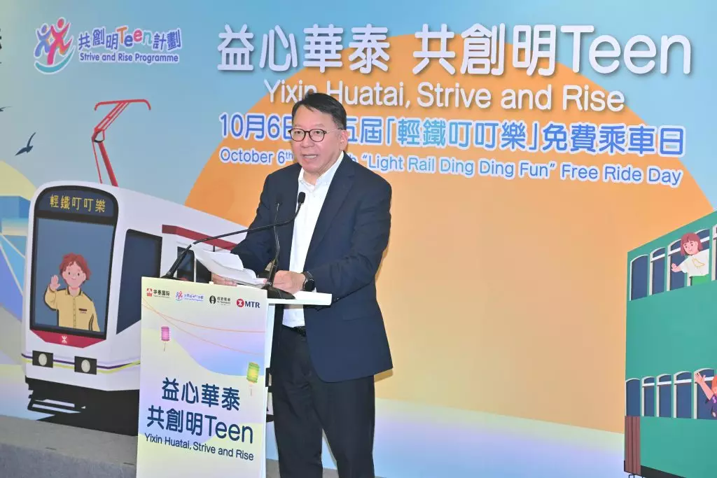政務司司長出席第五屆「輕鐵叮叮樂」免費乘車日活動啓動禮。政府新聞處圖片