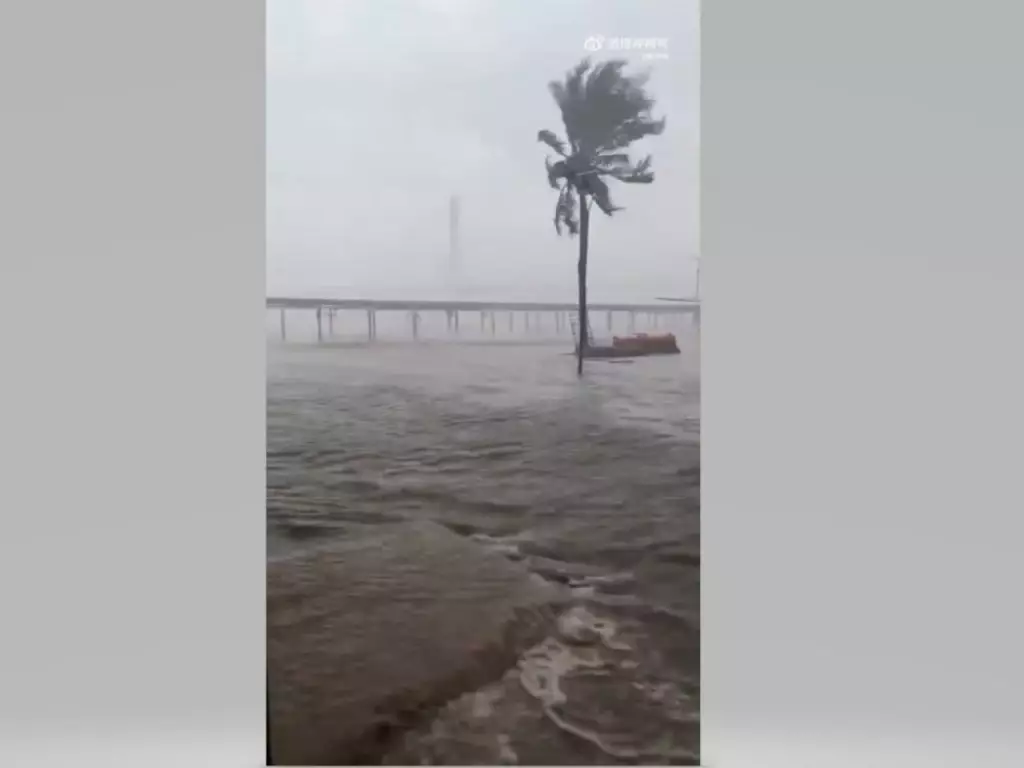 海南文昌鋪前漁港附近早上出現海水倒灌。氣象部門預計,今晚至明日海南島東北部到北部沿海,將出現60至180厘米風暴增水,海口市和文昌市的風暴潮預警級別為紅色。