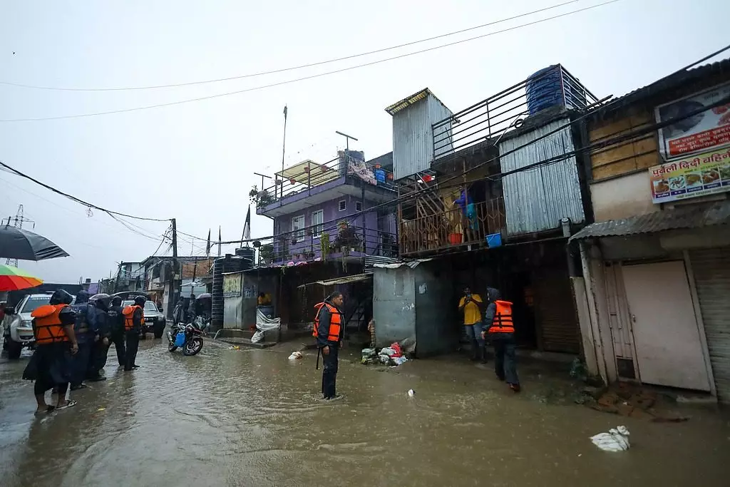 被山脈環繞的首都加德滿都,多條河流氾濫淹沒道路和房屋,切斷與其他地區的交通,機場內陸航班基本中斷,國際航班維持正常。