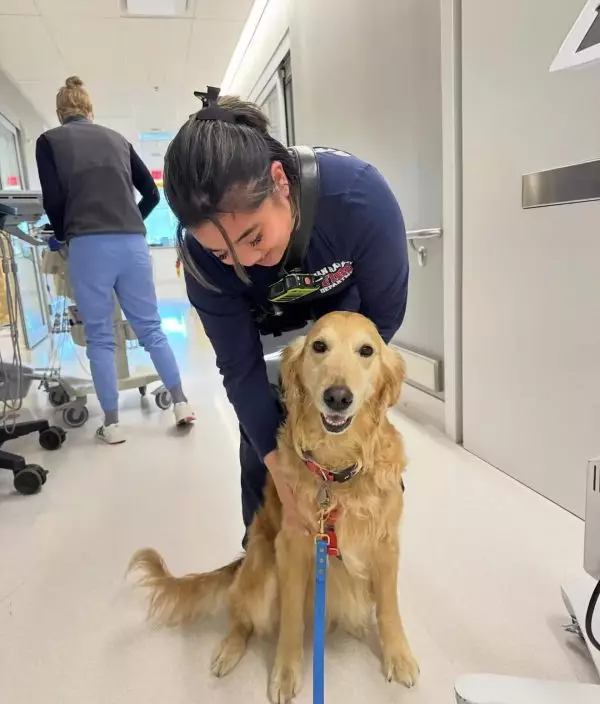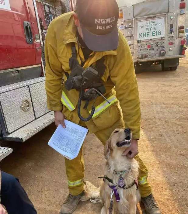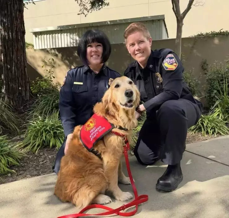 美國一隻金毛對情緒敏感被導盲犬學校退訓,在飼主陪伴下換跑道當治療犬陪伴消防警察釋放心理壓力。