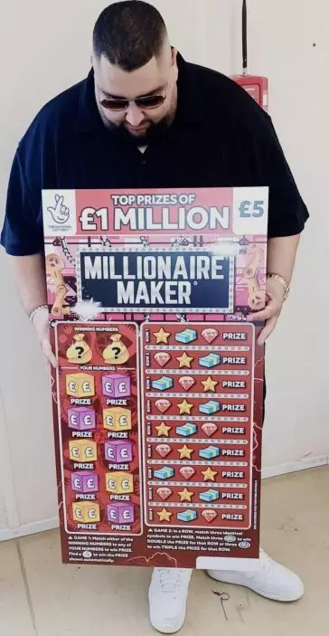 綜合外媒報導,英國諾福克郡馬蒂沙爾村一名39歲鏟車司機洛佩茲(Adam Lopez)於今年7月在當地一家便利店花費5元(英鎊,下同,約52港元)購買了一張刮刮樂彩票,結果幸運贏得100萬英鎊(約1050萬港元)獎金,讓原本銀行戶口僅剩12.4英鎊(約130港元)的他一夜暴富。