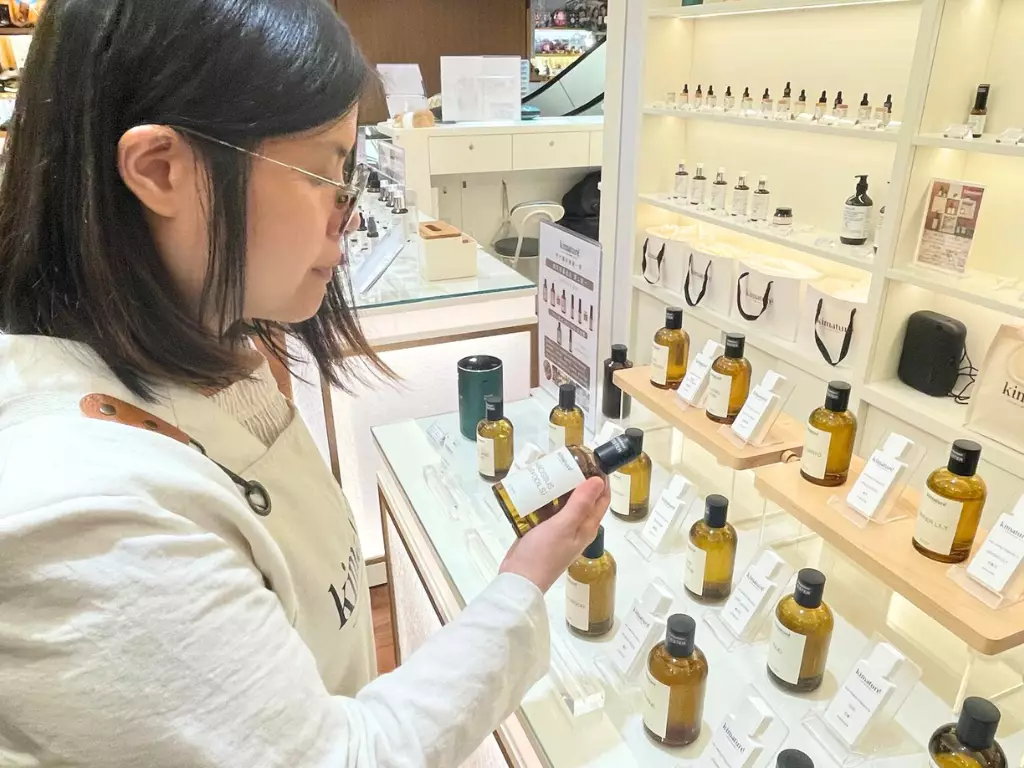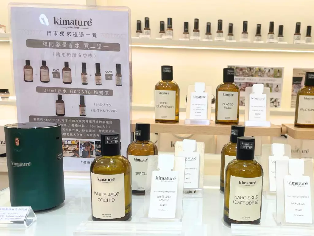 Kimature的香水產品系列,當中包括最熱賣的白蘭花香水。巴士的報記者攝