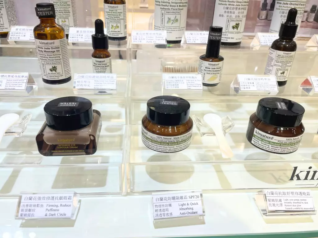Kimature的護膚品系列,部份以白蘭花作為原料。巴士的報記者攝