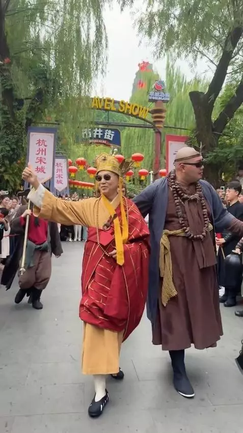 有網民在「小紅書」分享於杭州宋城遇見家英哥的片段,並留言:「80歲都還在打工,在景區加班呢!」片中可見,家英哥以其經典「唐僧」造型現身,但近日杭州天氣酷熱,氣溫高達37度,而家英哥卻仍要披上幾層厚的衣服,於露天的「古裝街」中出現,相信他非常辛苦,行動遲緩,更需要在旁演「沙僧」的工作人員攙扶。不過,家英哥雖然被熱到面無表情,但依然勉力向現場粉絲打招呼,相當敬業!
