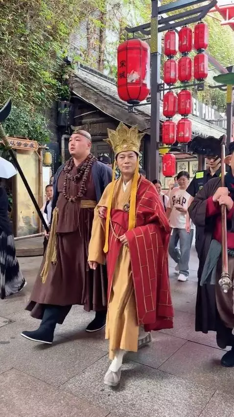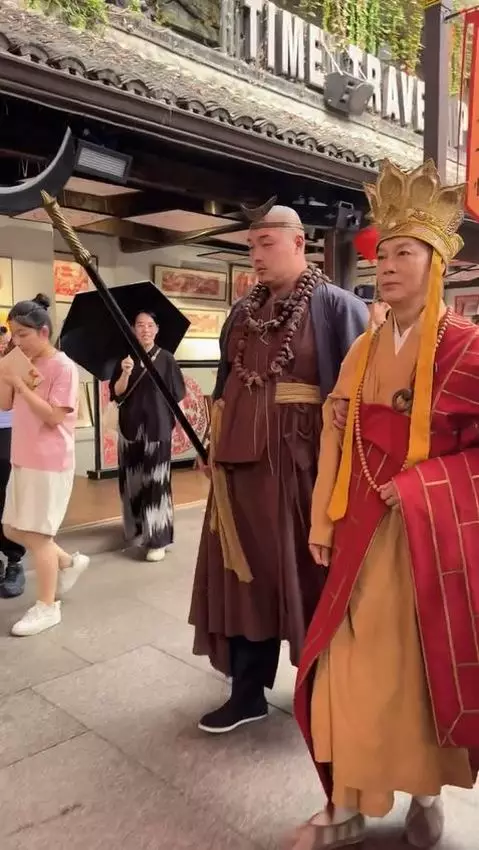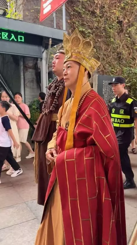 可見他在炎熱的天氣下依然要披上厚衣扮演其經典角色唐僧。