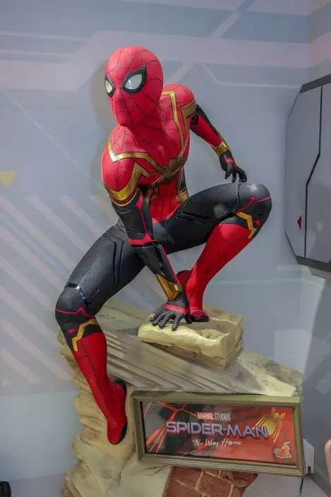 瞩目點之一必定是坐鎮新店的雕塑級 1:1蜘蛛俠雕像場景,HotToys 以「蜘蛛俠:不戰無歸」Integrated suit 電影造型為藍本,重磅鉅製極具視覺衝擊力的真人原大比例,讓您彷彿置身漫威宇宙,完美重現超級英雄的臨場感,近距離感受蜘蛛俠的張力與動熊,粉絲們不要錯過這个難得的合影機會!