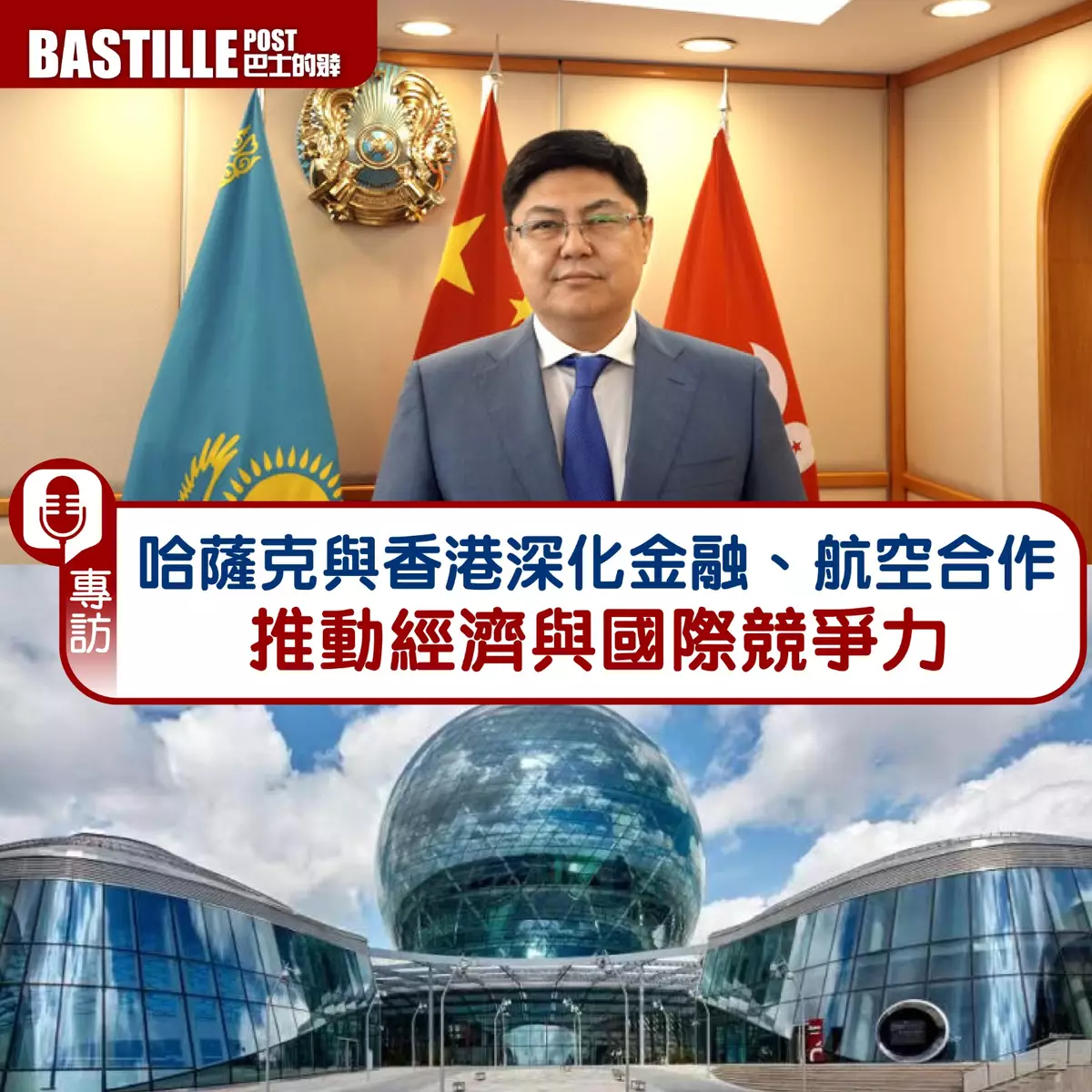 哈薩克近年積極謀求經濟多元化,在航空和金融等多個領域,與香港合作漸多,Bauyrzhan Dosmanbetov稱,進入香港市場,哈薩克企業不僅可籌集資金,也可覓得戰略夥伴,支持該國經濟轉型。