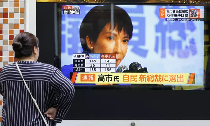 民眾關注市早苗當選自民黨下一任總裁。AP圖片