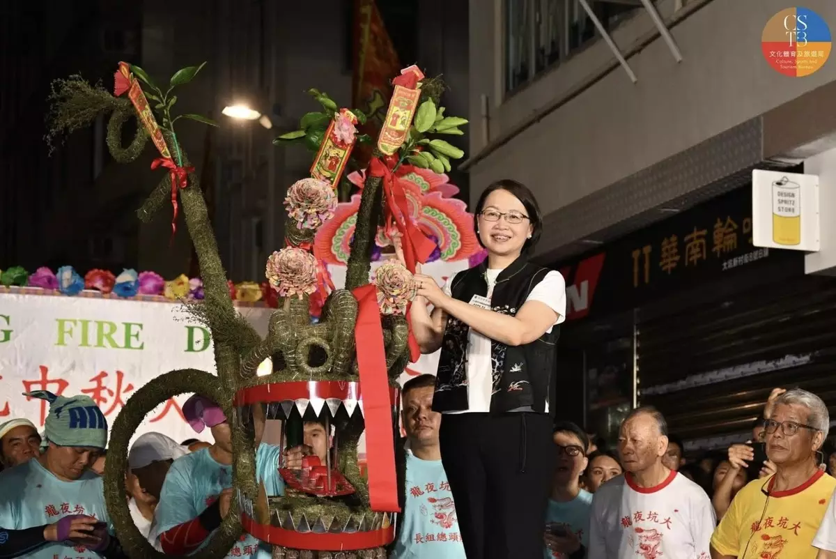 旅遊事務專員張馮泳萍5日晚到大坑,與其他嘉賓一同主禮舞火龍盛會。局方表示,這盛會已經有超過100年歷史,是香港很珍貴的傳統文化,亦是每年中秋節的重點節目、及最具本地特色的盛事活動之一,更已列入國家級非物質文化遺產,多年來一直吸引不少旅客專誠到訪親身體驗濃厚傳統文化氣氛。