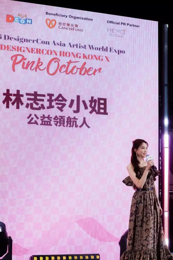 壓軸好戲是由「公益領航人」林志玲發起的「Pink October」慈善企劃。為響應國際乳癌防治月,志玲姐姐於6日下午親臨現場,為公益環節站台,用玩具的治癒力量呼籲各界關注女性健康。今次企劃將舉行慈善拍賣會,由一眾明星及企業捐出帶有粉紅色元素的產品作公開競投,當中包括內地實力派歌手譚維維捐贈的珍藏玩具、而金培達與陳少琪也熱情響應,特別捐出多款粉紅主題玩具參與慈善拍賣,一同為企劃注入溫暖力量。所有籌得的善款,將由林志玲代表大會,全數捐贈予本地/國際慈善機構,包括香港癌症基金會等,將這份粉紅力量傳送到最有需要的地方。場內亦展出林俊傑親筆簽名小熊,以及韓國天王Jay Park(朴載範)聯乘推出的「粉色版」限定玩具,星味滿瀉。