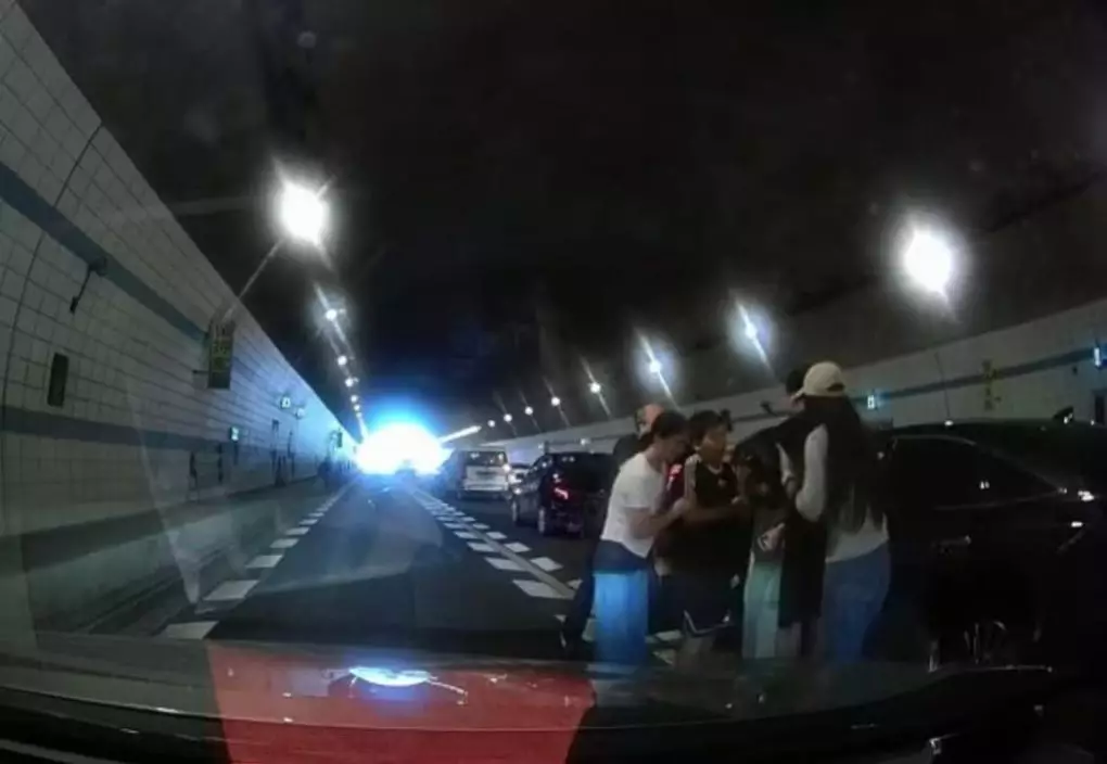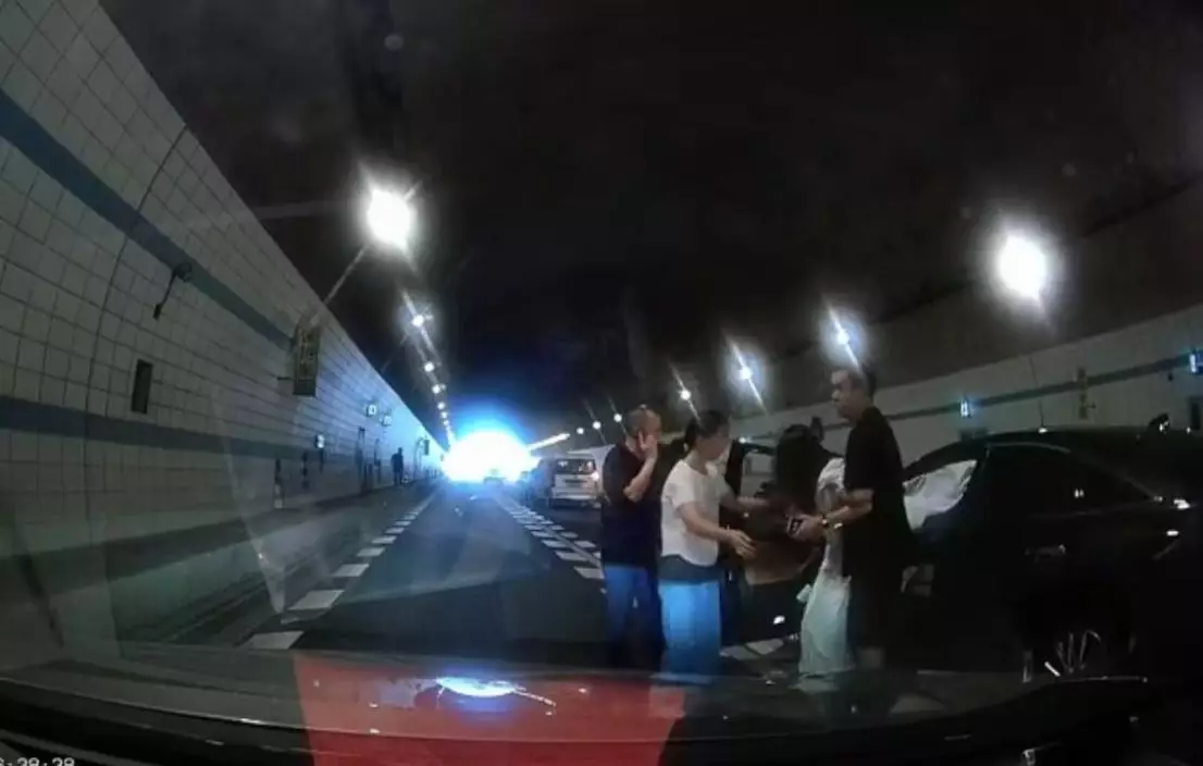 危急時刻,長子立即下車於隧道中急切攔車求助。由行車記錄器拍下的畫面可見,事故發生後部分車輛原本選擇繞行,但有駕駛注意到男童的異常舉動後停車察看。