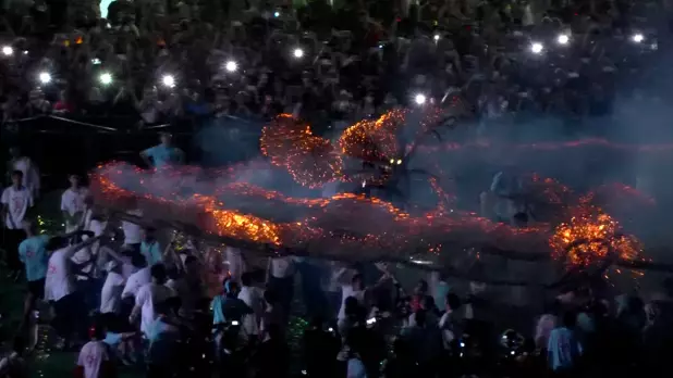 全長67米的火龍,以及由小朋友舞動的LED小火龍,晚上進入維園。大批市民在晚飯後到維園觀賞。