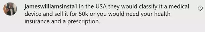 網友回復,「在美國,這會被歸類為醫療設備,售價可能高達5萬美元。」IG圖片
