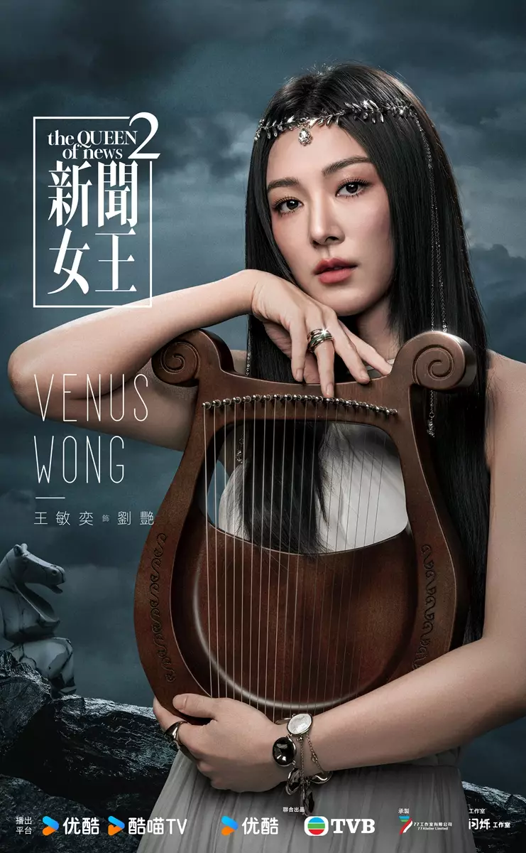 萬眾期待的《新聞女王2》將於11月10日晚上八點半翡翠台隆重首播,並逢周一至五晚八點半翡翠台播映。無綫官方今早(11月4日)在社交網曝光新一輪「眾神之戰」宣傳海報,7位主角佘詩曼、黃宗澤、李施嬅、高海寧、王敏奕、馬國明及陳曉華分別以不同的神之造型亮相,黑色系的有阿佘、黃宗澤及馬國明,白色系的則有李施嬅、高海寧、王敏奕及陳曉華,五位女主角之中,只有阿佘以全黑造型上陣,突顯阿佘角色Man姐(文慧心)與眾不同人設的同時、亦脗合了Man姐的剛烈性格。