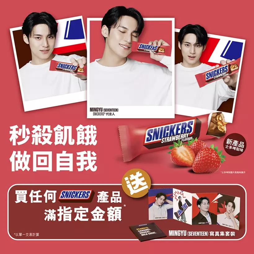 SNICKERS®更特別為與MINGYU粉絲們準備甜蜜驚喜,推出全新限量版MINGYU寫真集套裝換領活動!即日起於指定換領日期,買滿指定金額的SNICKERS®產品,即可於HKTVmall、7-Eleven及OK便利店換領全新限量版MINGYU寫真集套裝一份。此次推出的寫真集收錄多款MINGYU與SNICKERS®合作拍攝的系列造型,完美展現他帥氣迷人的臉龐,舉手投足間盡顯偶像魅力,定能讓粉絲愛不釋手。禮品數量有限,換完即止,粉絲萬勿錯過!