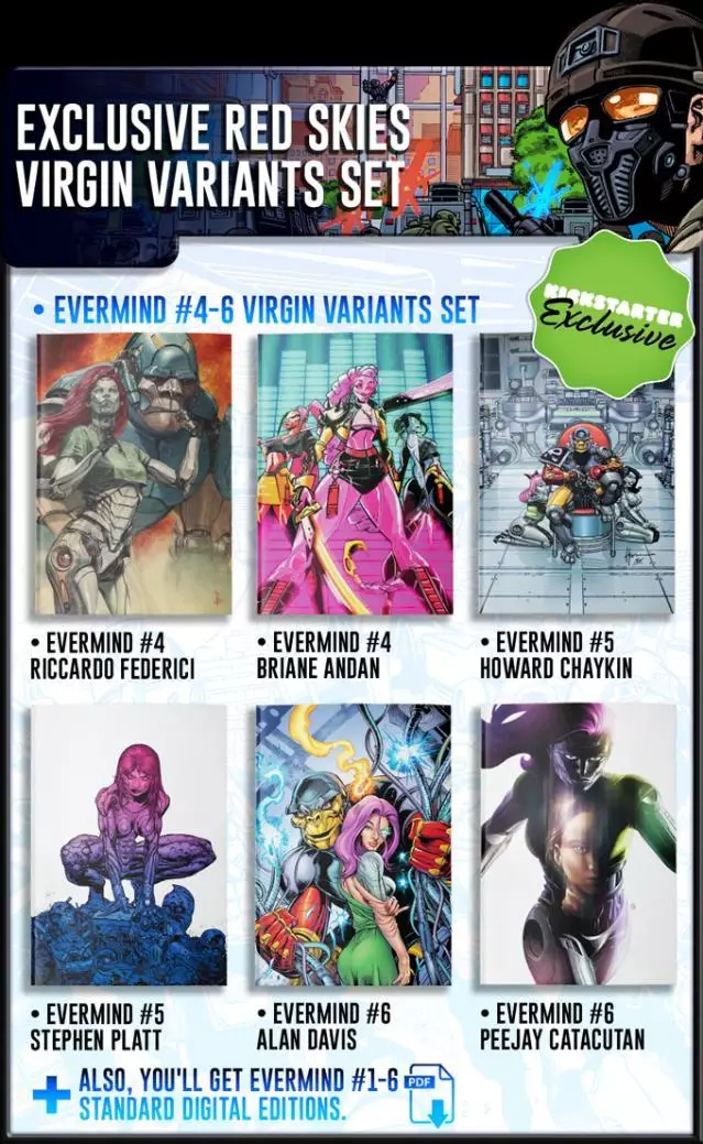 此次集資除首次完整收錄六期故事集外,更推出多款珍稀簽名版,粉絲將有機會獲得由漫畫界標誌性人物設計的限量變體封面,包括 Alan Davis(《Uncanny X-Men》、《Excalibur》)、Howard Chaykin(《American Flagg!》、《The Shadow》)、Stephen Platt(《Moon Knight》、《Prophet》)、Briane Andan(《Blade Runner 2039》、《Heavy Metal》)、Riccardo Federici(《Batman》、《Superman: Year One》)及 Peejay Catacutan(《Wolverine: Black, White & Blood》、《X-Force》)等共同創作,吳彥祖與陳孫華亦親筆簽名,為粉絲帶來無可比擬的收藏價值。