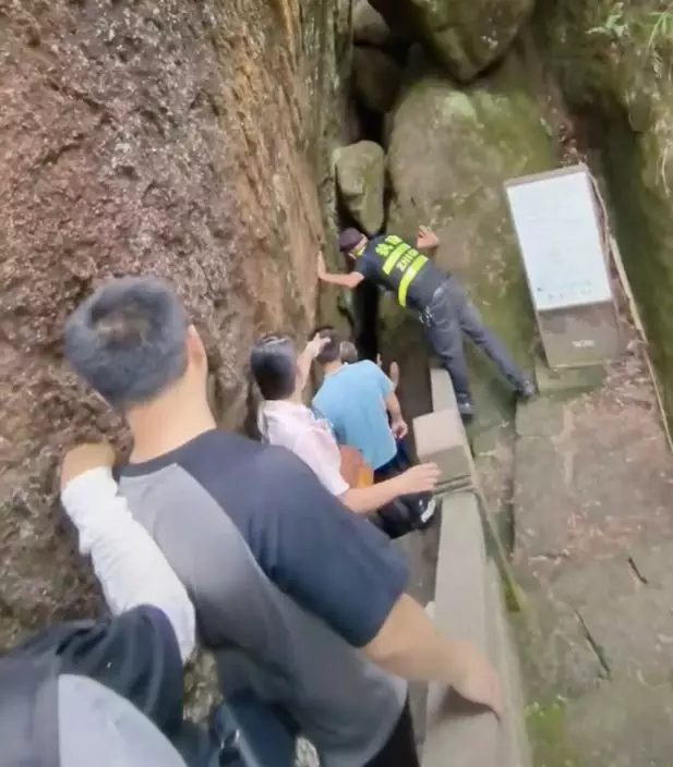 綜合內媒報導,一名帖主10月6日前往福建寧德著名景點太姥山風景區遊玩,期間行至「一線天」山洞的狹窄石縫時,發現前方有一名體重約90KG的男遊客被卡在山壁間動彈不得,導致後方大排長龍。現場民眾紛紛掏出手機拍攝紀錄這個尷尬畫面,帖主也影片中打趣到:「180斤的大哥卡住了,來的時候好好的,現在回不去了」。