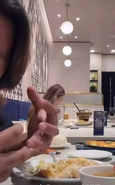 網紅在餐廳直播偷拍俄羅斯女模並當眾開黃腔做不雅手勢。影片截圖