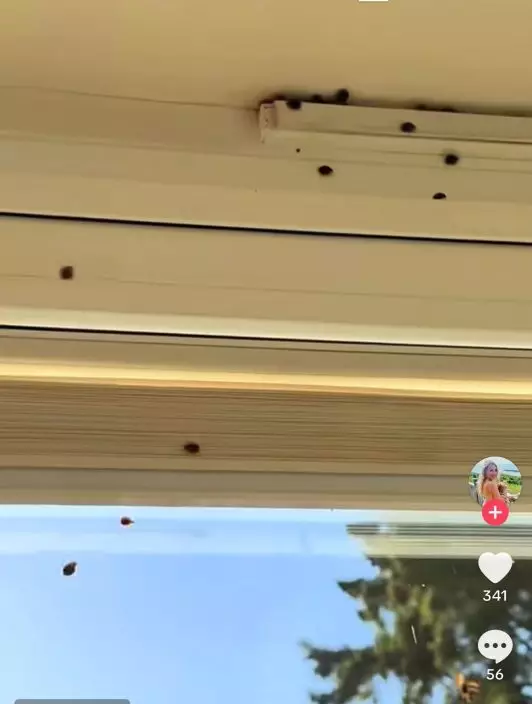 影片可見,屋內四處可見密密麻麻的瓢蟲在牆邊與玻璃上爬行。另有網民留言指:「我家後門和窗戶都是,現在我把頭髮包起來,所有插座也擋著了」、「我家也是,門看起來好像是瓢蟲做的」。