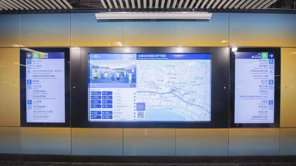 港鐵最近在「超級轉車站」金鐘站推出「電子街道圖」及「電子出口指示牌」,便利乘客和旅客查閱金鐘站附近目的地及設施的資料。