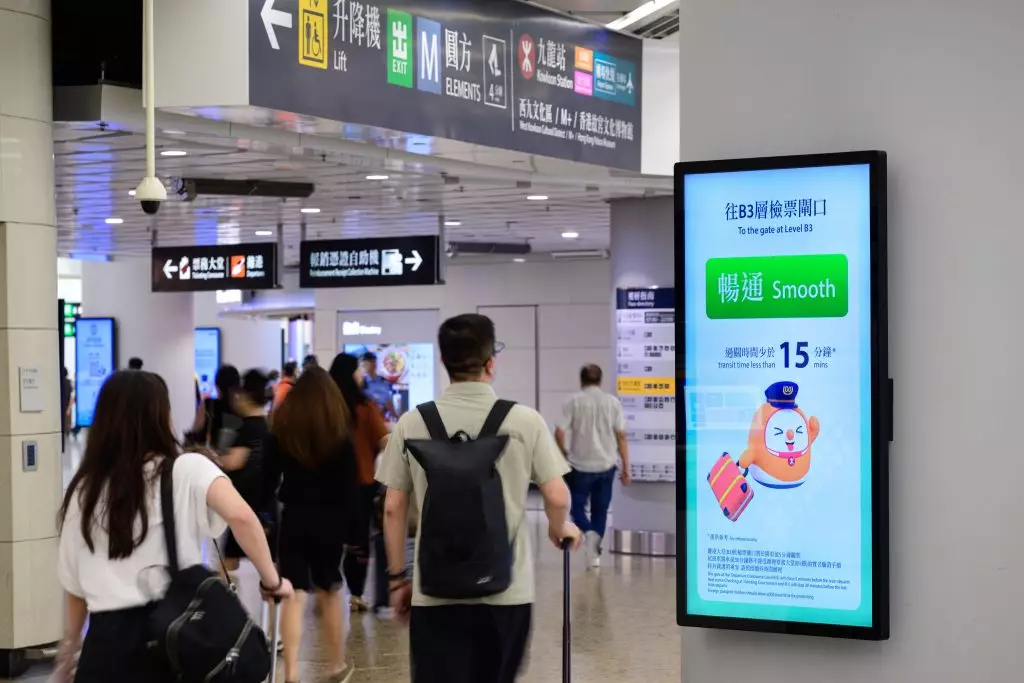 高鐵香港西九龍站亦已增設「通關情況顯示」, 透過影像分析、人工智能及大數據技術,實時監察及分析車站客流變化,再透過車站大堂的大型屏幕,顯示預計通關所需時間,方便乘客更輕鬆掌握相關資訊。